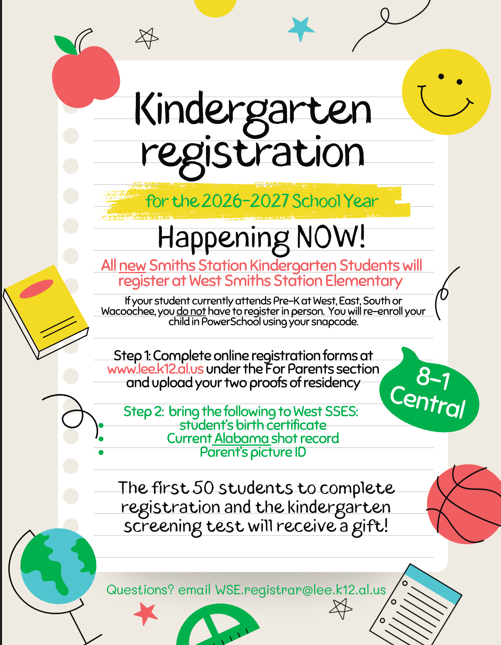 Kindergarten Registration has Started! Don't forget that Kindergarten registration for the 2026-2027 school year is happening now!